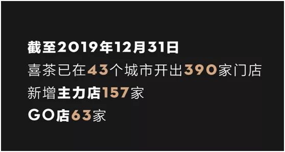 一直以来,喜茶因为排队现象严重而备受诟病,其创始人聂云宸多次在采访中提到,将加速开店。在喜茶发布的 2019 年经营数据中显示,过去一年,喜茶实现新增门店 200 多家——这一数字,超过喜茶前 6 年的门店数字之和。